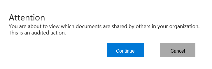 Pressing the button takes you to the Admin section of the portal, which allows you to oversee what the other users have shared. As this action allows you to review sensitive data, a consent dialog will pop up upon clicking the button: