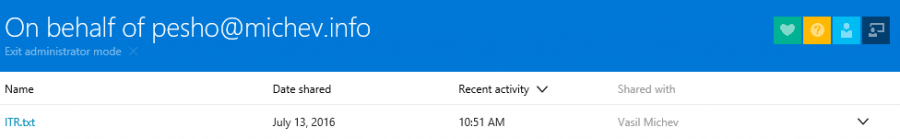 Clicking on the user name takes us into the familiar screen listing all the shared documents, however this time we are working on behalf of the user: