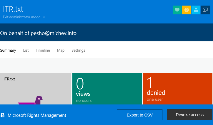 Another new addition that didn’t make the headlines, but it’s very useful IMO. It’s a simple addition of a new button in the Azure RMS tracking portal (https://portal.azurerms.com/):