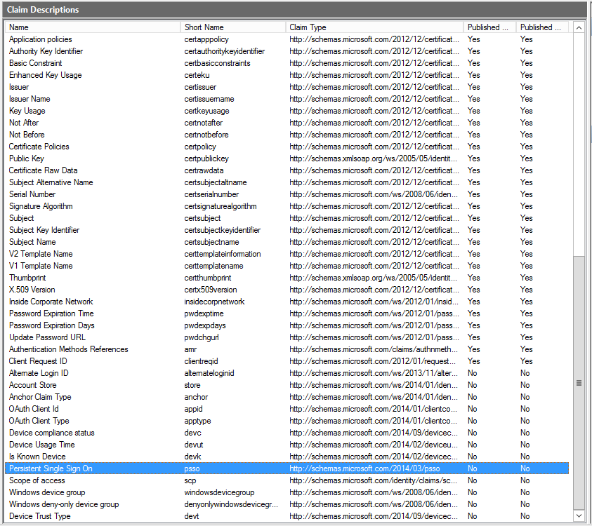 UPDATE: There is a great session from Ignite 2015 covering AD FS vNext, make sure to watch it. Here are some highlights: AD FS vNext servers will be able to join to existing 2012R2 farms, ACPs create from the MMC console can accept parameters if you leave the parameter (for example group ID) empty, the ability to use custom claims types with ACPs, improvements in permissions required to run/configure AD FS, lots of info about OAuth and OpenID Connect, per-RPT branding, using Device authentication as primary (how did I miss that, it’s clearly shown in the settings!), support for time-limited group membership (connected with the JIT/JEA functionalities in AD vNext). So cool!
