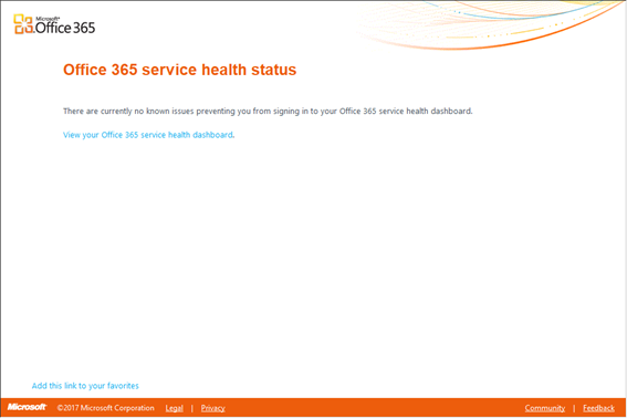 There’s a reason most of the Office 365 administrators have never even heard about this page – it’s pretty much useless. It hasn’t been updated in years and I cannot recall ever visiting the URL above and seeing anything other than the customary “There are currently no known issues preventing you from signing in to your Office 365 service health dashboard” message displayed. Never ever. No surprises this time around too: