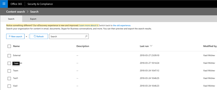 Few weeks ago, Microsoft rolled out an update to the User Interface (UI) used for the Content search and eDiscovery functionalities as part of the Security and Compliance Center in Office 365. While in general the workflow for either Content Searches or eDiscovery cases remains largely unchanged, there are some differences and newly added controls, which we will go over in this article.