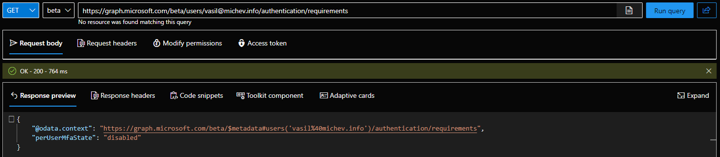 GET https://graph.microsoft.com/beta/users/user@domain.com/authentication/requirements