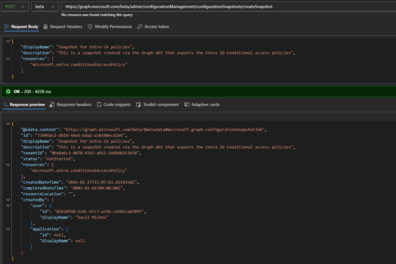 POST https://graph.microsoft.com/beta/admin/configurationManagement/configurationSnapshots/createSnapshot
