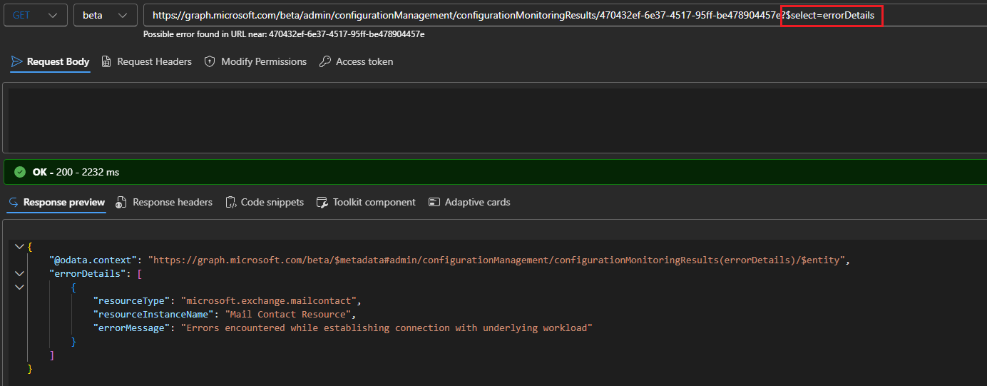 GET https://graph.microsoft.com/beta/admin/configurationManagement/configurationMonitoringResults/470432ef-6e37-4517-95ff-be478904457e?$select=errorDetails